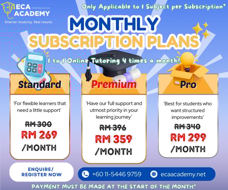 The only tuition centre that brings a high standard of teaching directly to your doorstep anywhere in Malaysia, ensuring an exceptional learning experience